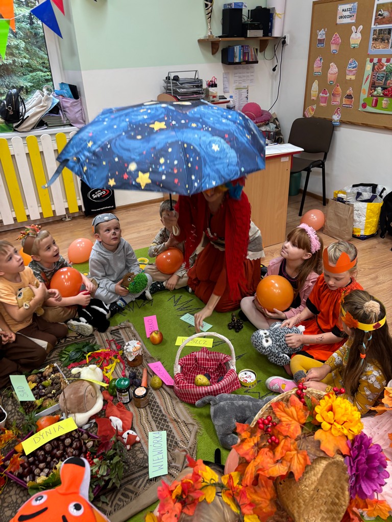 W piątek w naszym przedszkolu odbył się wesoły Bal Jesienny. Dzieci przyszły w pięknych strojach – były liście, kasztanki, dynie i grzybki. Wspólnie tańczyliśmy przy muzyce, braliśmy udział w konkursach i zabawach ruchowych. Nie zabrakło też degustacji zdrowych jesiennych smakołyków. To był dzień pełen radości, kolorów i uśmiechu!