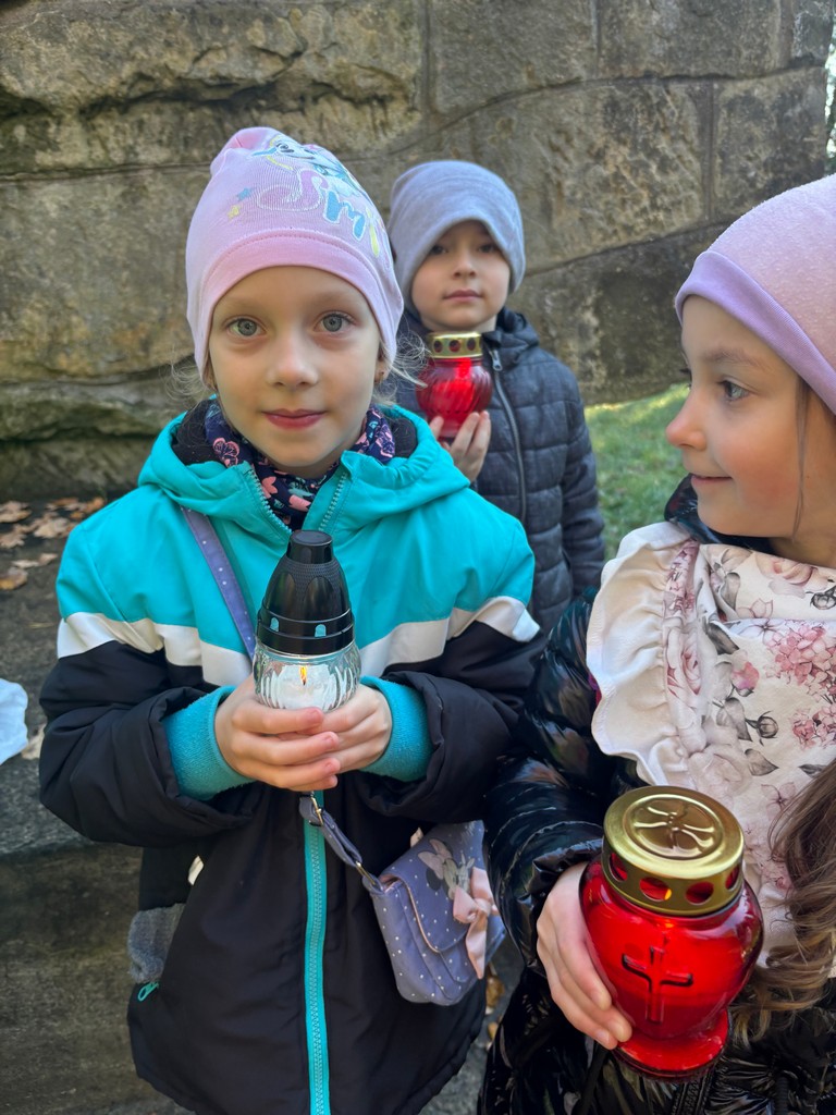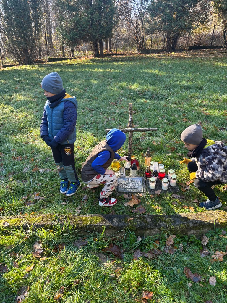 Dzieci z grupy zerówkowej wybrały się na cmentarz żołnierzy Armii Czerwonej i Wojska Polskiego w Gorlicach, aby uczcić pamięć poległych w latach 1939–1945. Przedszkolaki w ciszy i z powagą zapaliły znicz, oddając hołd żołnierzom, którzy walczyli o wyzwolenie naszego regionu. Podczas spaceru dzieci rozmawiały o znaczeniu pamięci narodowej, pokoju i wdzięczności wobec tych, którzy poświęcili życie dla ojczyzny. To była piękna i wzruszająca lekcja historii oraz patriotyzmu.