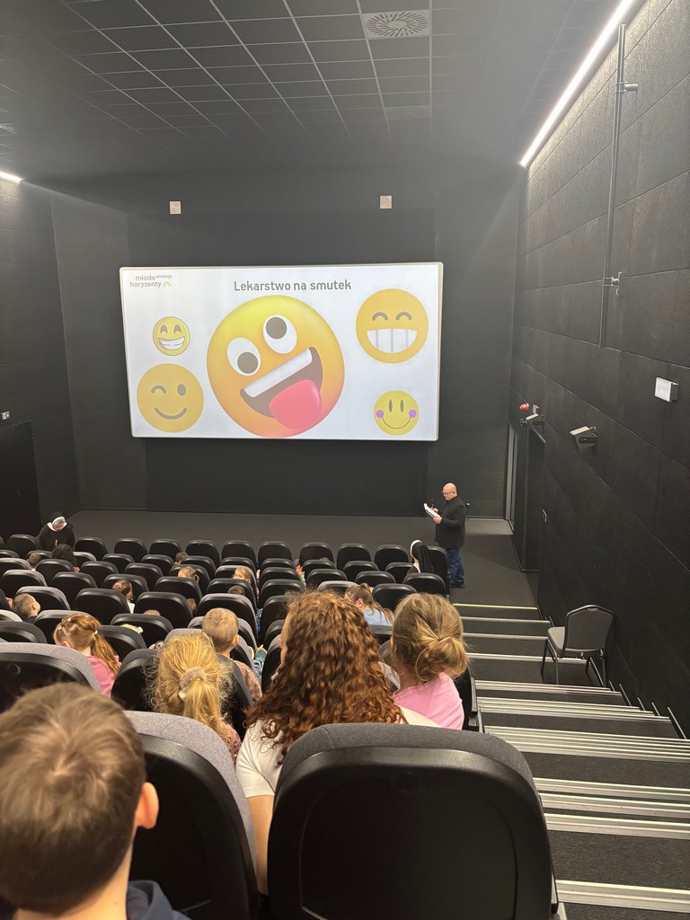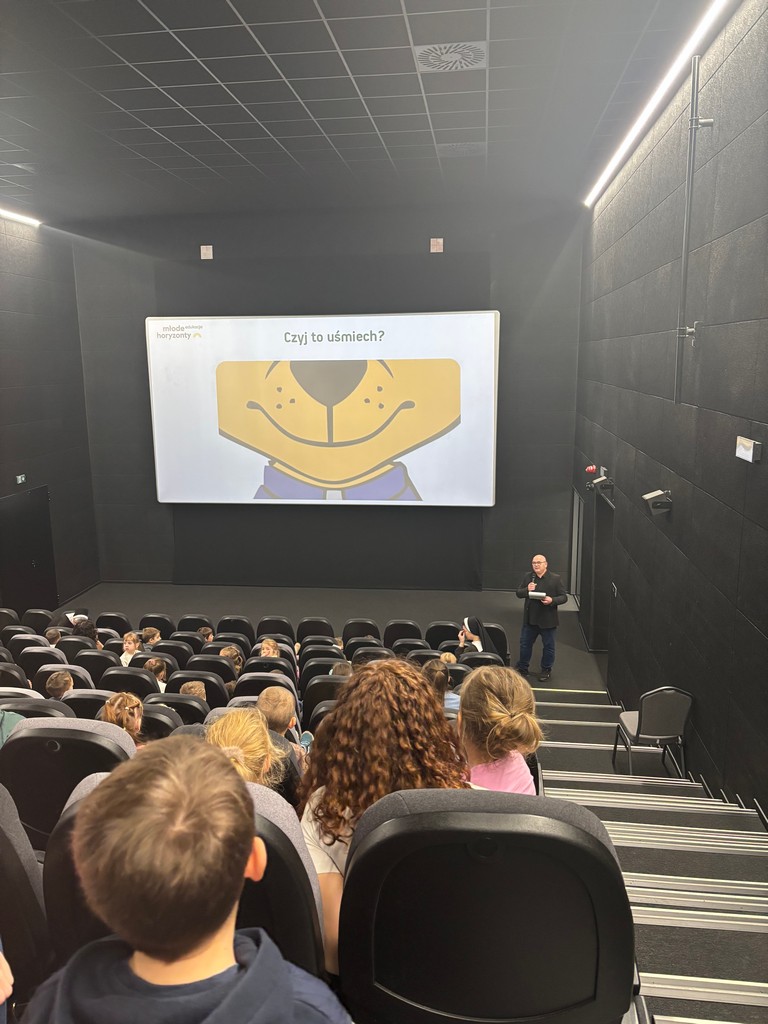 W ramach realizacji projektu edukacji filmowej „Młode Horyzonty” nasza zerówka miała wyjątkową okazję wziąć udział w pokazie bajki „Przytul mnie. W poszukiwaniu miodu” w kinie Legenda. Wizyta w kinie była nie tylko okazją do wspólnego oglądania filmu, ale także do poznania tajników sztuki filmowej – przed seansem dzieci wysłuchały krótkiej prelekcji, która wprowadziła je w świat bajki i zachęciła do uważnego obserwowania przygód bohaterów. Uczestnictwo w seansie wzbudziło w przedszkolakach ogromne emocje – były śmiech, radość, a także ciekawe pytania dotyczące historii i bohaterów. Wyjście do kina to nie tylko zabawa, ale i doskonała lekcja kultury, empatii i współpracy.
