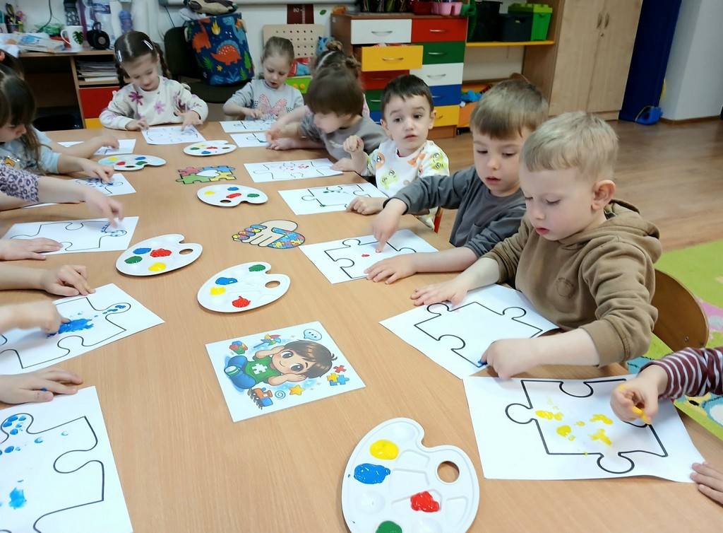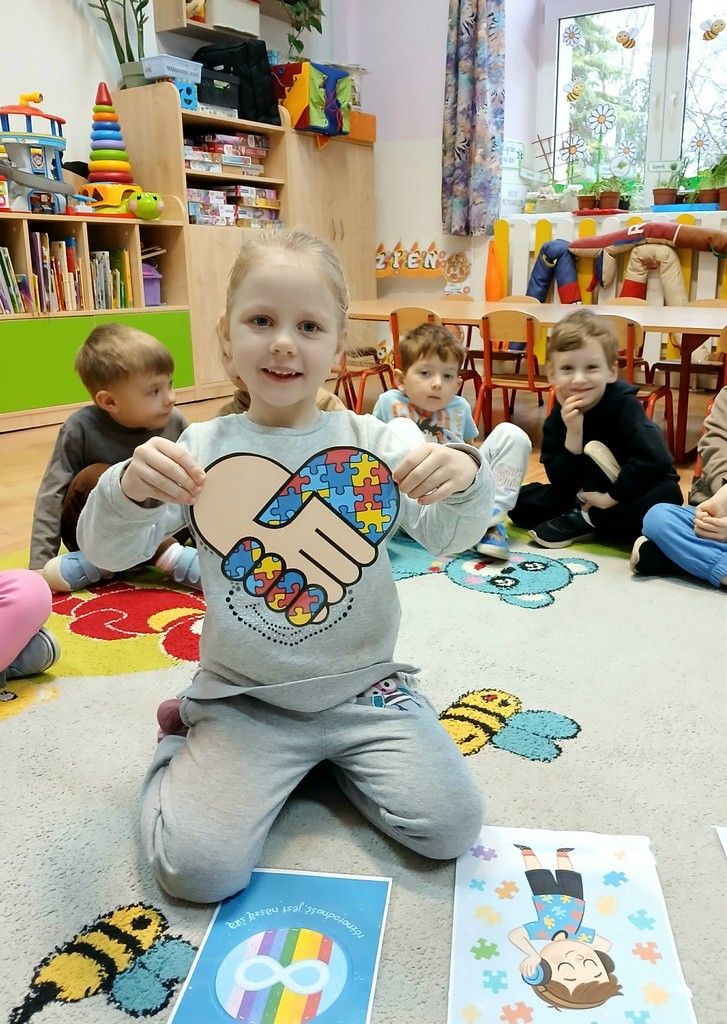 Dzień Autyzmu w naszej grupie maluszków był okazją do budowania empatii, akceptacji i zrozumienia dla różnorodności. Dzieci uczestniczyły w prostych zabawach sensorycznych, słuchały opowiadania o przyjaźni oraz uczyły się, że każdy z nas jest wyjątkowy. Wspólnie tworzyliśmy prace plastyczne w kolorze niebieskim – symbolu solidarności z osobami w spektrum autyzmu. Był to ważny dzień pełen uśmiechu, rozmów i pierwszych kroków w nauce tolerancji.